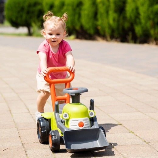 Faceți cunoștință cu tricicleta fără pedale tip tractor CLAAS, care aduce ore de distracție activă. Datorită cupeii frontale mobile, copiii pot încărca nisip sau cuburi, în timp ce remorca detașabilă transportă toate cele necesare pentru „expedițiile de fermier”. De la 12 luni, ajută la antrenarea echilibrului, coordonării și siguranței la mers.