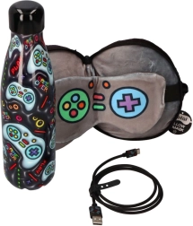 Termos elegant cu motiv de gaming și inscripții precum Game Over, care va încânta orice jucător. Datorită volumului de 500 ml, înălțimii de 26 cm și diametrului compact de 7 cm, este ideal pentru călătorii, școală și birou.