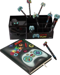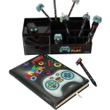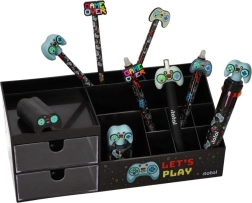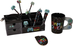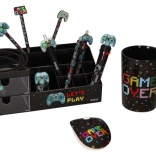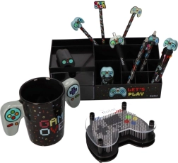 Grafica stilată cu gamepad și inscripția LET’S PLAY completează setupul de gaming sau biroul de student și îi conferă un caracter aparte.