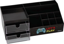 Aspectul modern, negru, cu inscripția LET’S PLAY și grafica cu gamepad adaugă setupului dvs. un accent jucăuș. Datorită dimensiunilor compacte, încape pe orice birou și ajută la crearea unui mediu de lucru curat, productiv și stilat.