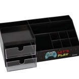 Acest organizator de birou practic ajută la ținerea sub control a haosului de pe masă, astfel încât să aveți totul la îndemână – de la instrumente de scris și cabluri USB până la mici accesorii pentru gaming. Cele două sertare transparente permit verificarea instantanee a conținutului, în timp ce compartimentele superioare mențin mărunțișurile ordonate și separate.