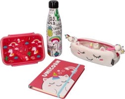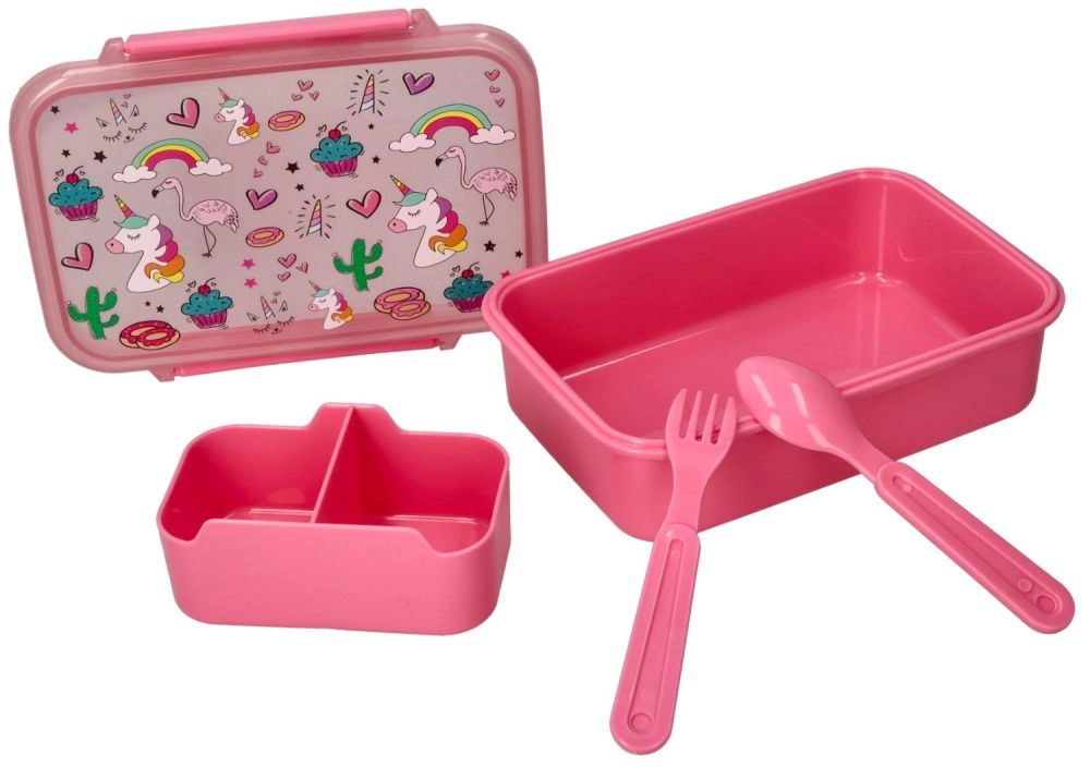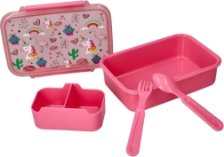 Motivurile colorate cu unicorni, curcubeu și inimioare stimulează bucuria copiilor de a servi gustări și transformă cutia într-un accesoriu preferat pentru școală.