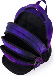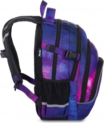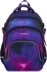 Rucsacul școlar ușor și încăpător OXYBAG Scooler Galaxy cu trei compartimente, organizer și compartiment pentru laptop oferă ordine perfectă și confort pentru elevii din clasa a 3-a și mai mari. Are spate anatomic, respirabil, bretele reglabile cu curea de piept, elemente reflectorizante pentru siguranță și bază întărită impermeabilă. Volum 28 l, greutate 780 g, capacitate de încărcare 8 kg.