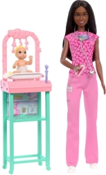 Deveniți o doctoră pediatrică cu Barbie și mica ei pacientă cu elemente inspirate din profesia medicală!
