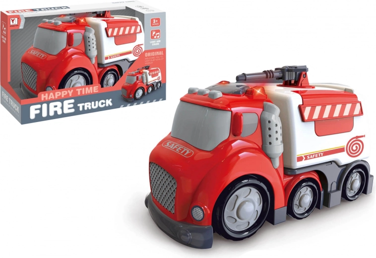 Această cisternă de pompieri realizată cu atenție la detalii aduce copiilor multă distracție și experiențe realiste. La apăsarea butoanelor de pe acoperiș se aude sunetul pornirii, claxonul sau mersul înapoi, în timp ce efectele luminoase subliniază atmosfera dinamică a intervenției.