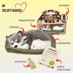 Căutați o jucărie drăguță care să bucure și să liniștească în același timp? Acest cățeluș de pluș husky alaskan, care respiră, pare incredibil de autentic – „se odihnește” ușor în culcuș, iar prin aspectul realist și prezența calmă creează o atmosferă plăcută. Plușul moale te îmbie la mângâiere, iar cățelușul este un companion grozav pentru camera copiilor și o decorațiune pentru living.