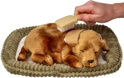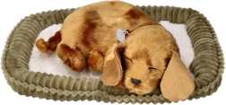 Acest cățeluș adormit realist imită fidel un animal de companie – inclusiv „respirația” fină, care induce o stare de calm și siguranță. Datorită plușului de calitate, este plăcut la atingere și va deveni un companion îndrăgit atât la odihnă, cât și la joacă.