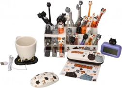 Organizatorul de birou cu pisicuță este soluția ideală pentru oricine dorește o suprafață de lucru curată și ordonată. Dispunerea multicompartimentată permite separarea instrumentelor de scris, riglelor, foarfecelor, agrafelor și a altor mărunțișuri. Datorită motivului jucăuș cu pisică, se potrivește în camera copiilor, pe banca de școală și în biroul de acasă.