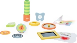 Cu acest set educațional de la marca Classic World, puteți introduce copiilor dumneavoastră secretele iluziilor optice. Setul conține 16 componente diverse, care vor captiva copilul dumneavoastră și vor stimula curiozitatea sa. Toate elementele sunt fabricate din lemn de înaltă calitate și se remarcă prin culori atrăgătoare.