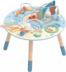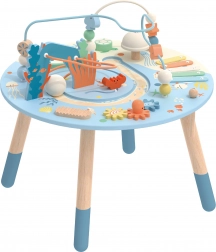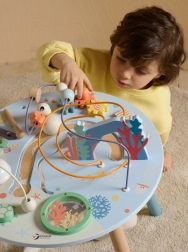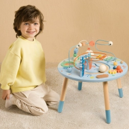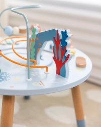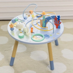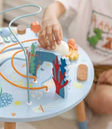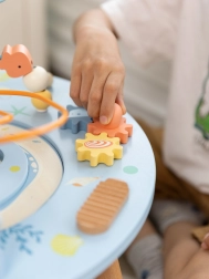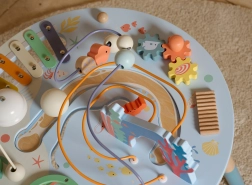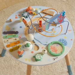 Măsuța din lemn pentru activități Viața marină este o introducere excelentă în lumea formelor și culorilor. Sigură pentru cei mici, realizată din lemn de calitate și vopsită cu culori netoxice. Copiii sunt încurajați să se joace în picioare, ceea ce susține coordonarea și echilibrul lor. Beneficiile educative ale acestei măsuțe sunt nemăsurate, fie că este vorba de îmbunătățirea motricității fine sau dezvoltarea abilităților muzicale.