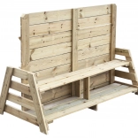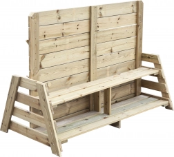 Lemnul de pin impregnat și execuția solidă asigură stabilitate, durabilitate îndelungată și siguranță în utilizarea zilnică în grădină sau pe terenul de joacă.