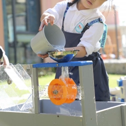 Realizată la cea mai înaltă calitate, măsuța le permite copiilor să se bucure de apă în zilele călduroase sau de nisip în perioadele mai răcoroase. Copiii pot experimenta cu apa, învățând despre curgerea ei și despre funcționarea pompelor, ceea ce le dezvoltă abilitățile și încrederea în sine.