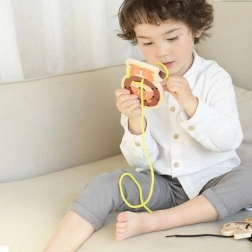 Cu acest frumos set de animăluțe din lemn pentru șnuruire, copiii își exersează prinderea, răbdarea și precizia. Prin înșirarea șnurului prin orificiile deja perforate ale animăluțelor, își întăresc degetele și încheietura și își dezvoltă în mod natural coordonarea mână–ochi. Jocul este silențios, liniștitor și se potrivește de minune atât în călătorii, cât și acasă.
