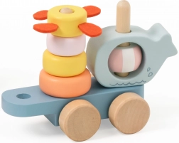 Trenulețul susține motricitatea fină, imaginația spațială și creativitatea. Cele trei „vagoane” interconectabile pot transporta diverse piese de construcție, pe care copiii le combină după bunul plac. Șnurul de tras îi motivează la mișcare și transformă orice cameră într-o aventuroasă călătorie pe ocean.
