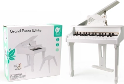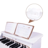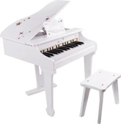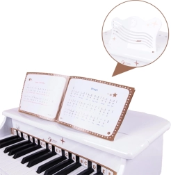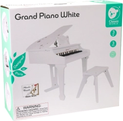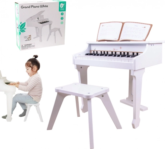 Pianina albă pentru copii CLASSIC WORLD oferă o experiență autentică a cântatului la un instrument real, într-o formă sigură și jucăușă. Datorită construcției din lemn, scăunelului stabil și suportului pentru partituri, micii muzicieni se bucură de o poziție comodă și de obiceiuri corecte la cântat. Pachetul include o carte ilustrată cu partituri, care ușurează primele melodii.