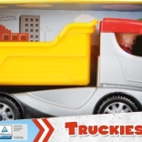 Autobasculanta Lena Truckies este complet funcțională mecanic, permițând jocul și manipularea realistă.