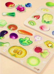Puzzle-ul montessori din lemn cu legume este alegerea ideală pentru prima jucărie educativă. Ilustrațiile colorate și clare îi motivează pe copii să numească diferitele tipuri de legume și sprijină în mod natural interesul pentru alimentatia sănătoasă. Dimensiunea pieselor este adaptată mânuțelor mici ale copiilor.