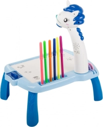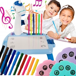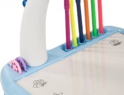 Măsuța interactivă de desen cu proiector le ușurează copiilor primele încercări în lumea desenului. Datorită șabloanelor proiectate, vor învăța ușor să traseze, să recunoască forme și culori, în timp ce melodiile vesele susțin concentrarea și bucuria jocului. Construcția solidă și fină, din materiale plastice sigure, este concepută pentru utilizare comodă și sigură.
