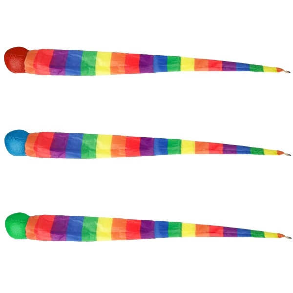 Descoperiți jucăria care aduce distracție în mișcare! Mingea cu coadă are o lungime de 100 cm, asigurând experiențe de joc incitante la fiecare aruncare. Culorile curcubeului atrag atenția copiilor și îi încurajează să se joace activ, fiind ideală pentru dezvoltarea abilităților motorii și a coordonării mână-ochi. Bucurați-vă de ore de distracție în grădină, parc sau acasă.