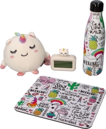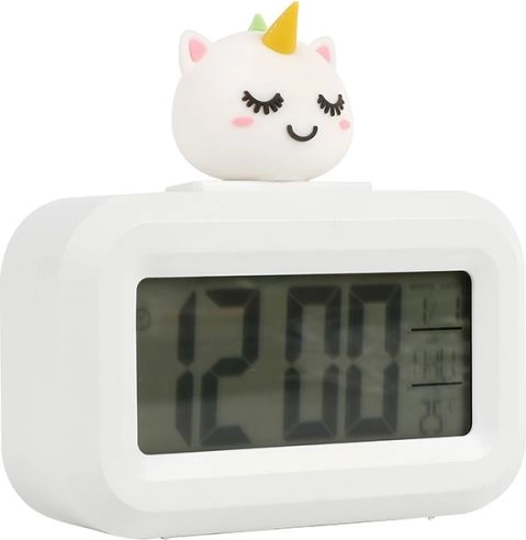 Un ceas deșteptător alb, drăgălaș, cu motiv de unicorn, care îi va încânta atât pe copii, cât și pe iubitorii accesoriilor magice. Datorită dimensiunilor sale compacte, este potrivit pentru noptieră sau birou. Funcționează cu 2 baterii AAA (nu sunt incluse). Ușor de utilizat, construcție ușoară și design sigur, ideal pentru copii de la 3 ani.
