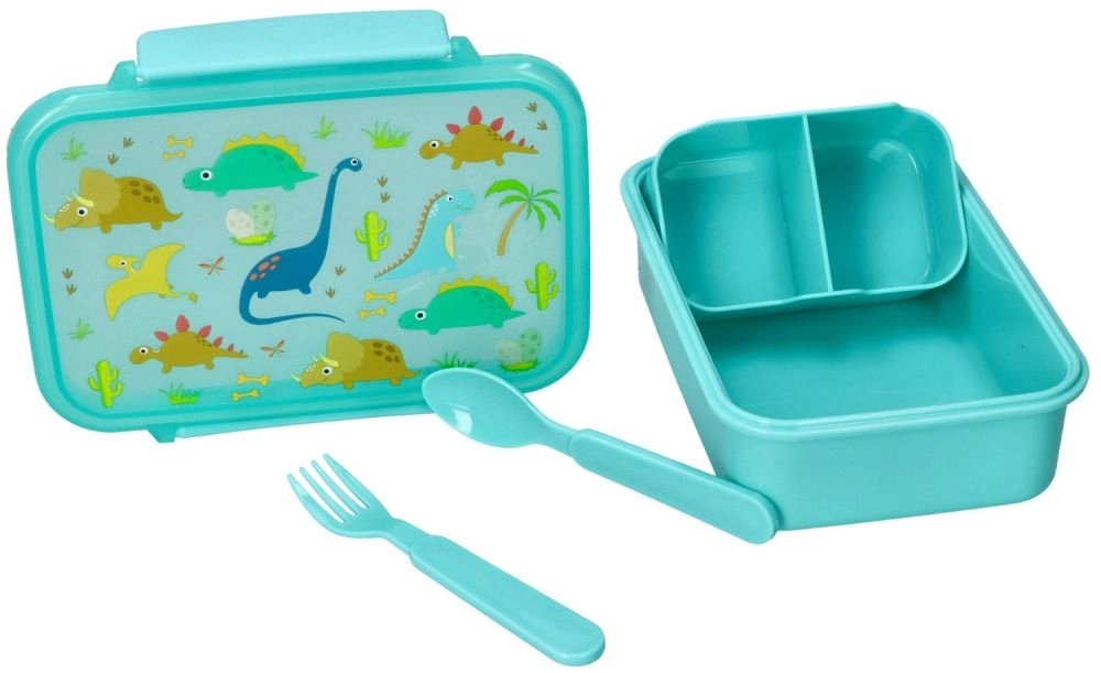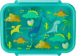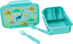 Cutie pentru prânz practică, cu motiv cu dinozauri, ideală pentru gustări la școală și excursii. Include tacâmuri – furculiță și linguriță, este potrivită pentru congelator și poate fi încălzită în cuptorul cu microunde fără capac până la 100 °C. Dimensiunile compacte 18 × 13 × 6 cm încap în ghiozdan sau rucsac.
