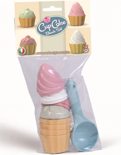 Set distractiv din 9 piese pentru micii patiseri ai deliciilor din nisip. Forme pentru nisip – prăjiturele de la marca Androni conțin o lingură pentru înghețată și 8 forme pentru prăjiturele. Fabricat în Italia din plastic de calitate, potrivit pentru copii de la 10 luni.