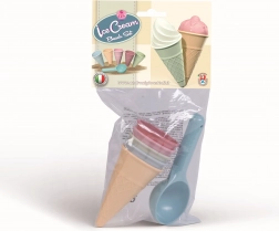 Set de joacă din 6 piese pentru nisip, pentru micii vânzători de înghețată: conține cinci cornete și lingură pentru înghețată. Fabricat în Italia din plastic de calitate, potrivit de la 10 luni.