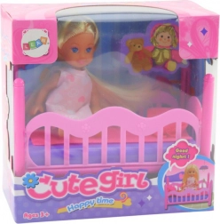 Acest set fermecător cu păpușă și pătuț este o jucărie excelentă pentru copiii care doresc să aibă grijă de păpușile lor și să creeze scenarii de îngrijire. Setul conține o păpușă de 11 cm, îmbrăcată într-o rochiță roz delicată, și un pătuț frumos de culoare roz, cu saltea și pătură.