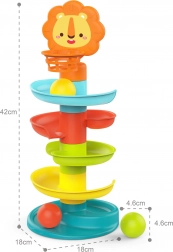 Acest turn colorat spiralat ajută la dezvoltarea abilităților motorii, coordonării și preciziei copiilor dumneavoastră. Cele cinci niveluri asigură o distracție de lungă durată, în timp ce leul simpatic de la vârf poate inspira copiii să atingă obiective și să-și îmbunătățească abilitățile. Mingiuțele conțin elemente mici care emit sunete și oferă stimuli senzoriali suplimentari. Jucăria este fabricată din plastic sigur și testat pentru a maximiza siguranța micilor jucători.