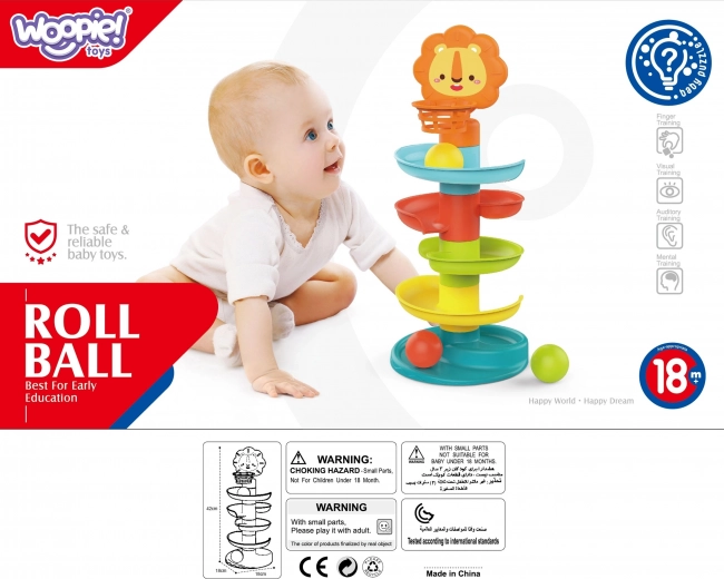 Cele cinci niveluri asigură copiilor o distracție grozavă și dezvoltarea abilităților prin urmărirea mingiuțelor cum se rostogolesc în jos.
