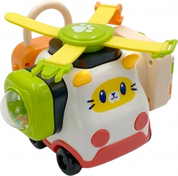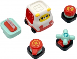 Setul include o mașinuță căreia i se pot atașa elemente de pe panou.