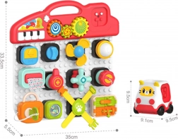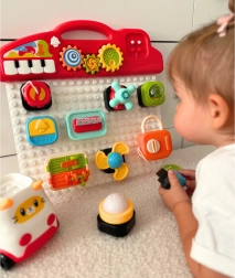 Panoul colorat include diferite comutatoare, butoane și taste care dezvoltă abilitățile motorii.