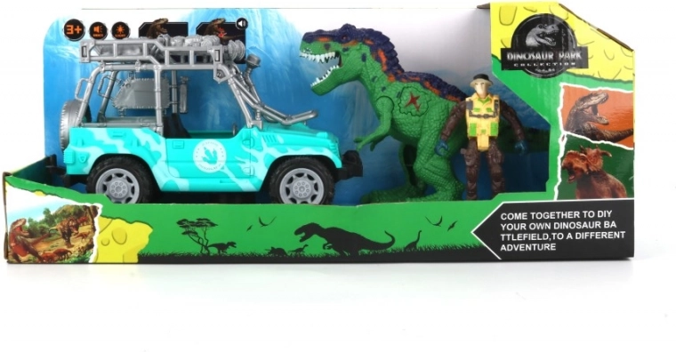 - Include o figurină dinozaur detaliată și o mașină de jucărie