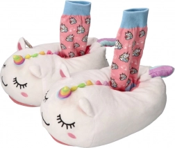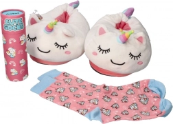 Designul cu unicorn și șosetele asortate în stil cadou încântă ca dar drăguț și ca accesoriu practic pentru casă.