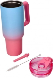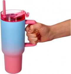 Descoperă confortul unei căni termice mari cu pai, care îmbină volumul mare de 1200 ml cu o construcție ușoară și practică. Datorită capacului cu pai, bei comod și în deplasare, iar mânerul confortabil facilitează transportul. Designul ombré albastru‑roz adaugă stil fiecărei zile.