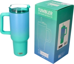 Descoperiți cana termică mare cu pai, care combină capacitatea ridicată de 1200 ml, designul modern în gradient verde și mânerul confortabil pentru o priză sigură. Capacul transparent cu pai asigură băutul comod în deplasare, fără vărsări inutile. Ideală pentru apă, cafea rece, limonade și băuturi izotonice.