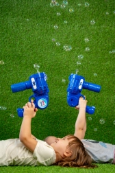 Pistolul de făcut baloane Fru Blu este alegerea ideală pentru orice după-amiază a copiilor în grădină, în parc sau la petreceri. Datorită duzelor multiple, creează un jet dens de balonașe, care plutesc lin în aer și rezistă mult timp. Mânerul ergonomic și controlul simplu asigură că se vor bucura de joacă și copiii mai mici.