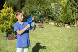 În pachet este inclusă o rezervă de 0,4 l, astfel încât poți începe pe loc. Efectele luminoase integrate adaugă farmec fiecărui joc, mai ales pe înserat. Pentru funcționare sunt necesare 3× baterii AA (nu sunt incluse).