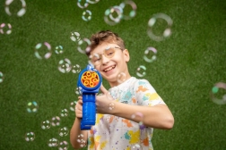 Pornește distracția în aer liber cu pistolul de baloane FRU BLU, care creează o mulțime de baloane de lungă durată la simpla apăsare a trăgaciului. Datorită funcționării automate, duzelor multiple și efectelor luminoase, îi va încânta atât pe copii, cât și pe adulți. În pachet găsești și o rezervă de 0,4 l pentru joacă imediată.