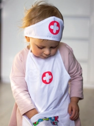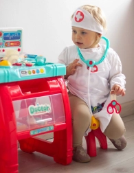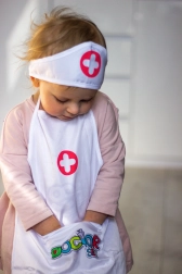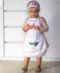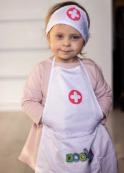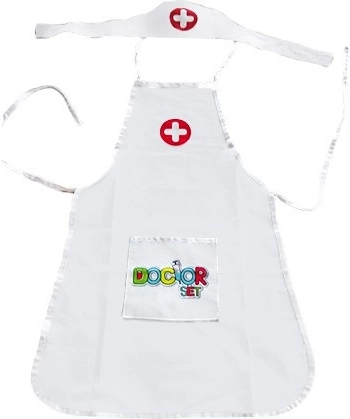 Șorțul ușor, cu buzunare practice, poate ține stetoscopul și alte accesorii pentru copii, pentru ca jocul de-a doctorul să fie mereu la îndemână.