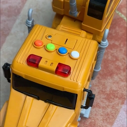 Patru butoane colorate activează efecte de lumină și sunet – pornirea motorului, claxonul și sunetele de mers, amplificând realismul jocului.