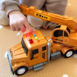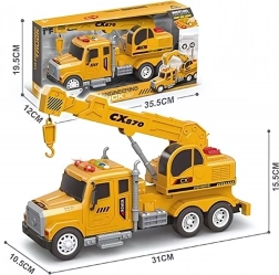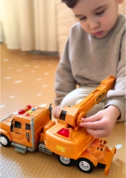 Camionul-macara WOOPIE 1:14 este jucăria ideală pentru micii constructori. Patru butoane colorate pe acoperișul cabinei activează lumini și diverse sunete (pornirea motorului, claxon, sunete de mers), în timp ce mersul liber asistat face ca vehiculul să continue deplasarea după ce este împins.