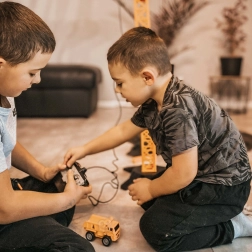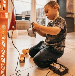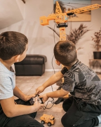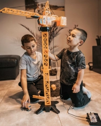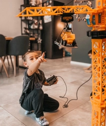 Marea macara WOOPIE aduce copiilor un șantier realist chiar în camera lor. Datorită telecomenzii, manevrarea este simplă și distractivă – macaraua se rotește, ridică, coboară și deplasează încărcături pe braț. Înălțimea reglabilă de 103 sau 64 cm permite adaptarea jocului la spațiu și vârsta copilului.