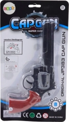 Descoperă revolverul clasic cu capse, care îi va încânta pe micii și marii fani ai westernurilor. Datorită tamburului rotativ are un aspect veridic și poate fi folosit cu capse sau fără – ca jucărie, recuzită sau parte a unui costum. Corpul negru cu mâner roșu oferă un aspect autentic și o prindere confortabilă.