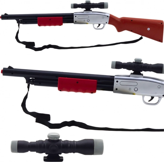 Modelul este echipat cu o lunetă detașabilă, care îi oferă un aspect profesional și permite o imersiune sporită în joc. Patul asezonat cu imitatie de lemn și finisajele metalice fac ca jucăria să arate extraordinar. In plus, cureaua de umăr atașată permite purtarea comodă, ideală pentru jocurile dinamice și scenografii.