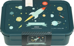 Această drăguță cutie pentru gustare, cu motiv spațial cu rachetă, ajută la păstrarea separată a fructelor, legumelor, pâinii și gustărilor. Tăvița practică, detașabilă, cu două compartimente o transformă într-un bento box grozav pentru școală, activități și excursii. Capacul etanș cu clips reduce vărsările nedorite și păstrează gustarea proaspătă mai mult timp.