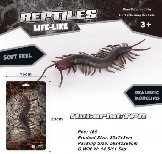 Această miriapodă uriașă din cauciuc este o jucărie fascinantă pentru copii și adulți. Cu lungimea sa realistă de 23 cm, este un accesoriu ideal pentru activități de joc sau ca element decorativ în scene tematice. Materialul elastic permite manipularea în siguranță și oferă o senzație realistă la atingere. Poate fi un excelent adaos pentru activități educaționale despre insecte.
