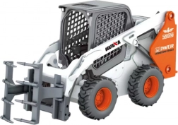 Model realist al unui încărcător frontal cu gheară la scară 1:50, realizat din aliaj metalic rezistent și plastic, oferă detalii precise și elemente funcționale. Are structură metalică, braț și gheară mobile, roți din cauciuc pentru o mișcare lină și un atrăgător design alb-negru cu detalii portocalii. Excelent pentru colecționari, ca decor și jucărie educativă.