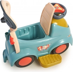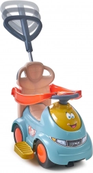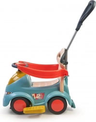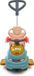 Cadru de împins, ride‑on, balansoar, vehicul ghidat de părinte și spațiu practic de depozitare sub șa. Se adaptează vârstei și abilităților copilului.
