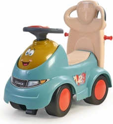 Volanul cu lumini și sunete stimulează simțurile și jocul de rol la volan, în timp ce rotițele pivotante 360° de sub suporturile pentru picioare facilitează manevrele. Practicul spațiu de depozitare sub șa găzduiește mărunțișuri și jucării, astfel încât ai totul la îndemână.